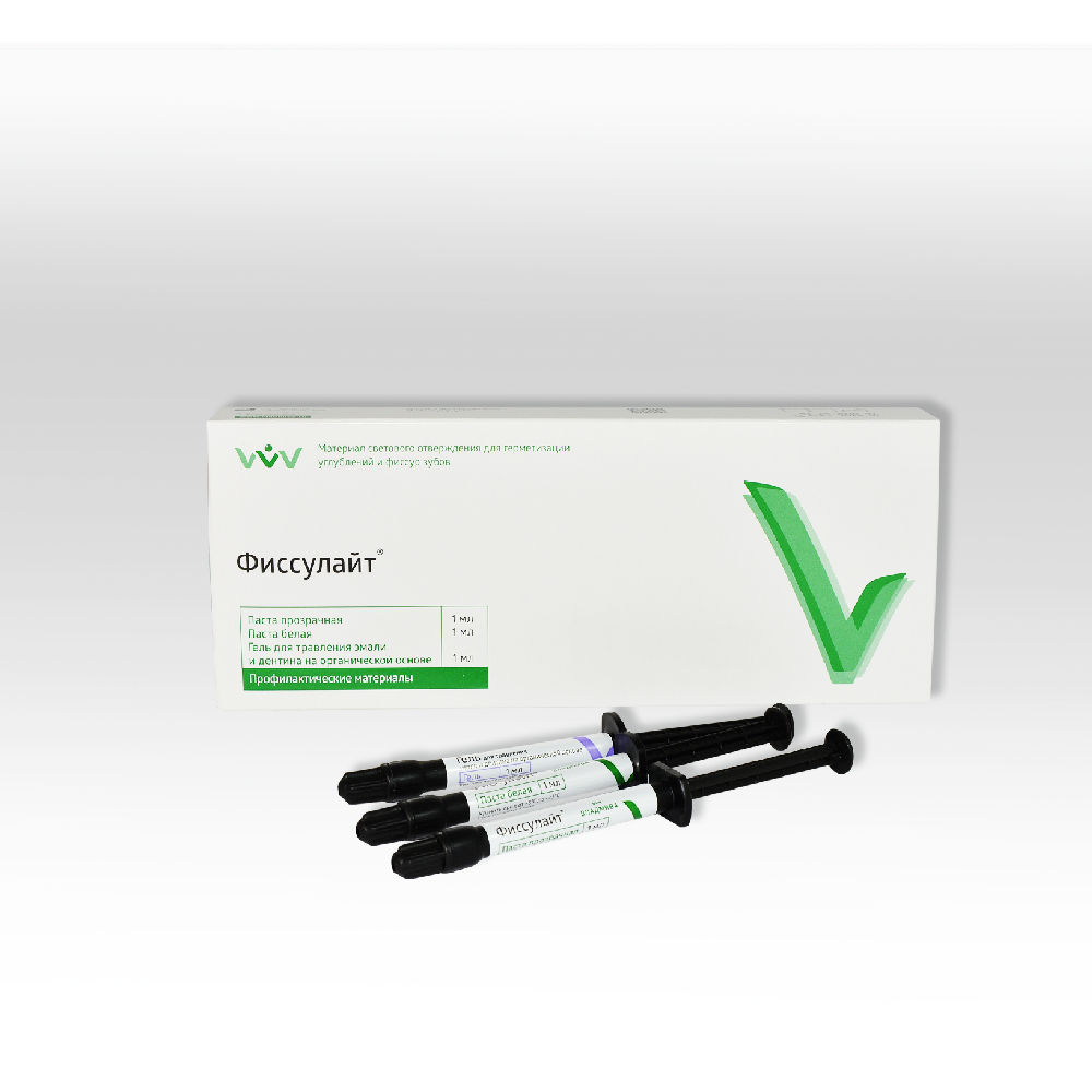 Фиссулайт от производителя Владмива — набор материалов светового отверждения для герметизации углублений и фиссур зубов.