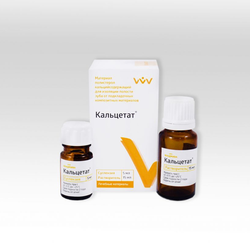 Кальцетат от производителя Владмива — применяют для изоляции полостей перед внесением цементных подкладок, постоянных пломб и для обработки культи зуба перед цементированием коронок и мостовидных протезов.