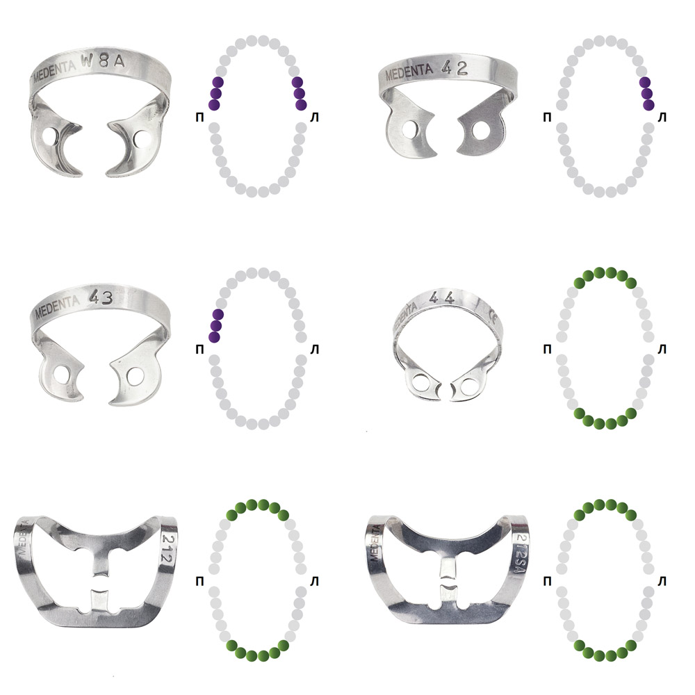 Кламмеры - аналоги бринкеров от производителя Medenta Instrumets Co — клампы для раббер-дам.