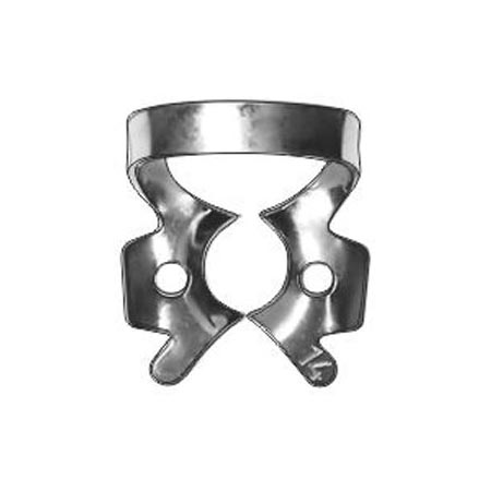 - № 8 (кламп с жесткими изогнутыми "челюстями" (с глубоким захватом), с крыльями, для нижних и верхних моляров с большим размером коронки и выраженным экватором, может быть использован при сильном разрушении коронки зуба);
