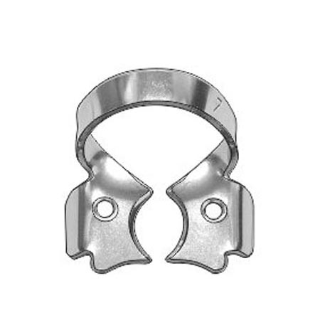 - № 7 (кламп с плоскими горизонтальными "челюстями", с крыльями, для нижних и верхних моляров с большим размером коронки и выраженным экватором);