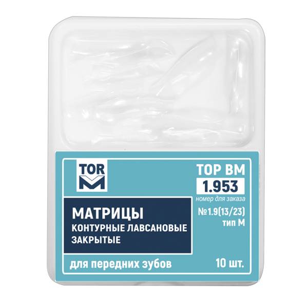 Матрицы контурные лавсановые закрытые для передних зубов от производителя Тор ВМ — имеют анатомическую форму, обеспечивают идеальное воссоздание профиля реставрируемого зуба.