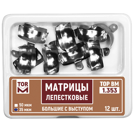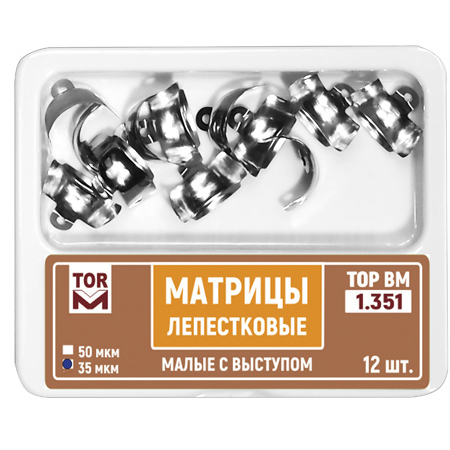 Матрицы лепестковые с выступом от производителя ТОР ВМ — предназначены для разделения аппроксимальных поверхностей соседних зубов при реставрации II типа.