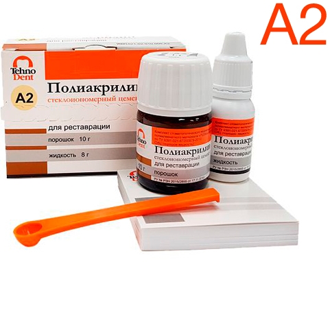 Полиакрилин для реставраций от производителя TehnoDent — стеклоиономерный цемент на основе тонкодисперсного кальций-алюмофторсиликатного стекла, полиакриловой кислоты, винной кислоты.