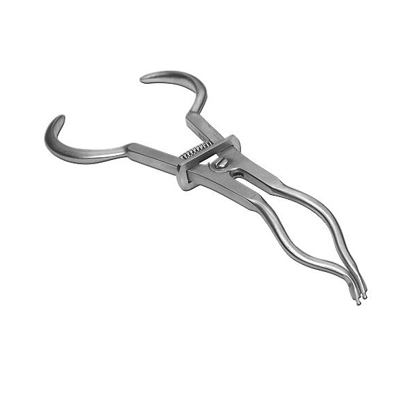 - Ретенционные шипы на “щечках” щипцов вводятся в отверстия на клампе, щипцы фиксируются в раздвинутом состоянии