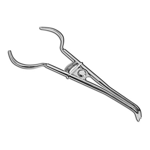 - Ретенционные шипы на “щечках” щипцов вводятся в отверстия на клампе, щипцы фиксируются в раздвинутом состоянии.