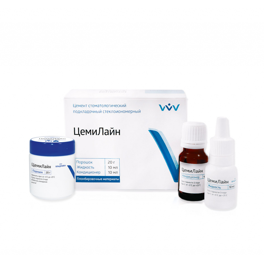 ЦемиЛайн — стоматологический подкладочный стеклоиономерный цемент химического отверждения от производителя Владмива.