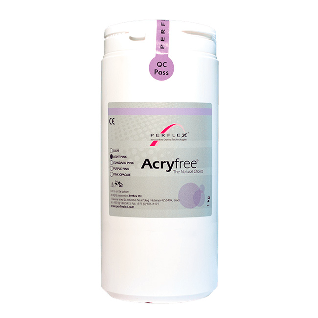 - Perflex Acryfree превосходно полируется. Уникальный блеск поверхности зубного протеза позволяет предотвращать накопление многочисленных бактерий и отложений. Кроме того, пациенты, которые являются чувствительными к мономеру, используемому в обычных акриловых зубных протезах, могут теперь выбрать Perflex Acryfree®. Это биосовместимый материал без мономера.