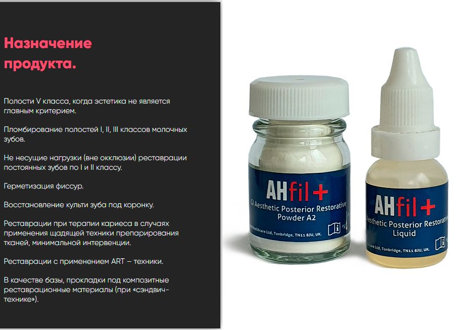 AHfil+ от производителя AHL — стоматологический cтеклоиономерный цемент для реставрации, обеспечивающий высокую прочность и износостойкость.