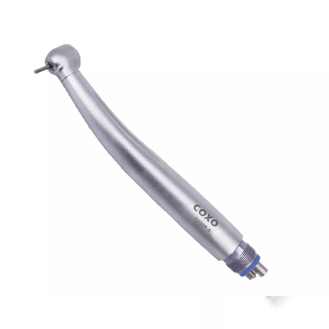 Турбинный наконечник CX208-A от производителя Foshan Coxo Medical Instrument Co., Ltd — без света, с ортопедической или стандартной головкой, с кнопочным зажимом, с корпусом из медного сплава.