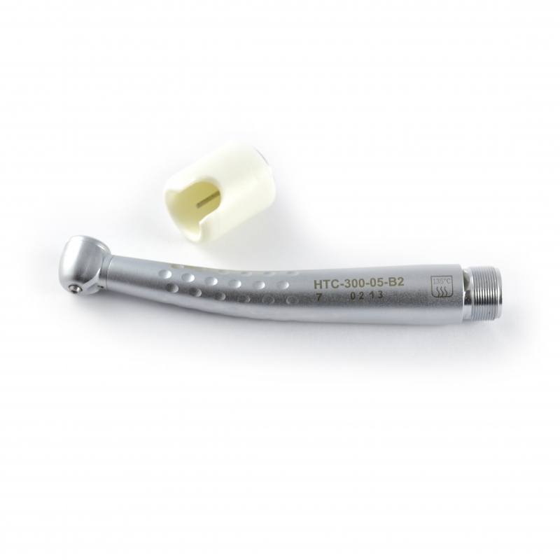 Наконечник турбинный НТС-300-05 B2 от производителя Вх-Тайфун с нормируемым в динамике радиальным биением и входящими в конструкцию специальными шарикоподшипниками, предназначен для закрепления режущих инструментов с диаметром хвостовика 1,6 мм и передачи им вращения от бормашины.