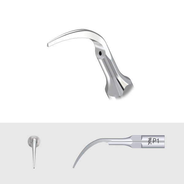 - Насадка P1 — универсальная насадка "Perio" для снятия зубного камня в неглубоких карманах.Благодаря своей тонкости, эта насадка идеально подходит для работы с проксимальными поверхностями.
