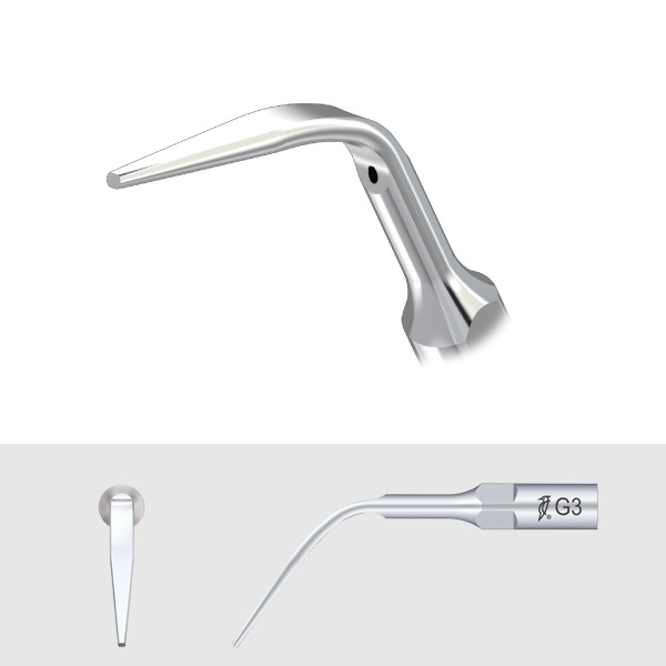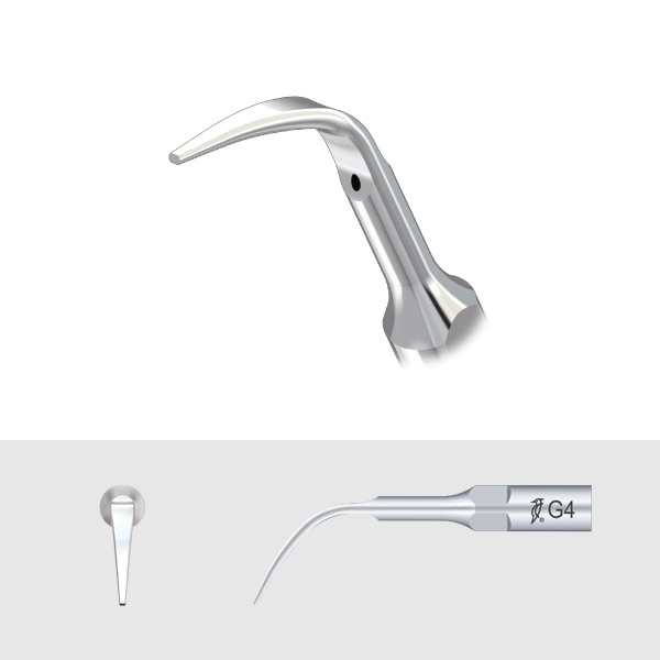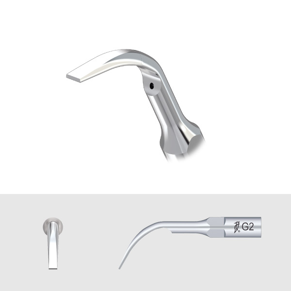 - Насадка G2 — универсальная насадка "General" для снятия более значительных отложений зубного камня, адгезивного налета.Используйте плоский конец насадки для обработки поверхности зуба.