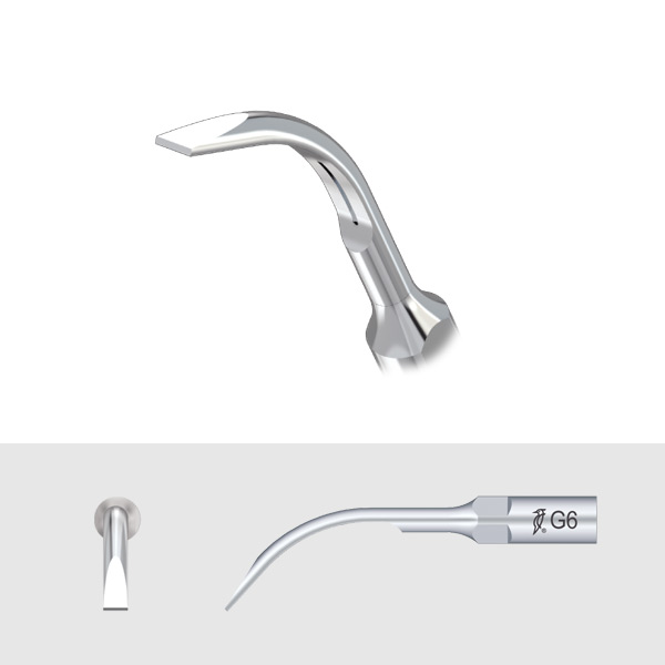 - Насадка G6 — универсальная насадка "General" для удаления большого количества зубных отложений. Обрабатывайте поверхность зуба плоским концом.