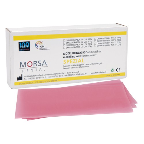 Базисный воск Spezial, летний от производителя Morsa — базисный воск, используется для моделирования базисов съемных протезов, для ряда ортопедических аппаратов и протезов, изготовляемых из пластмасс. Он может применяться для изготовления прикусных шаблонов с окклюзионными валиками для формования оттискной ложки или ее частей. Воск обладает отличной пластичностью и достаточной твердостью.