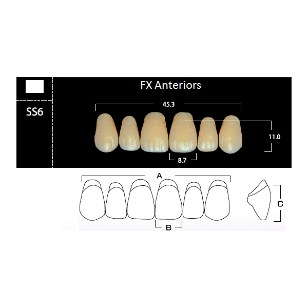 Зубы акриловые FX Anteriors фронтальные, верхние, фасон SS6 на планке (6 шт), Yamahachi
