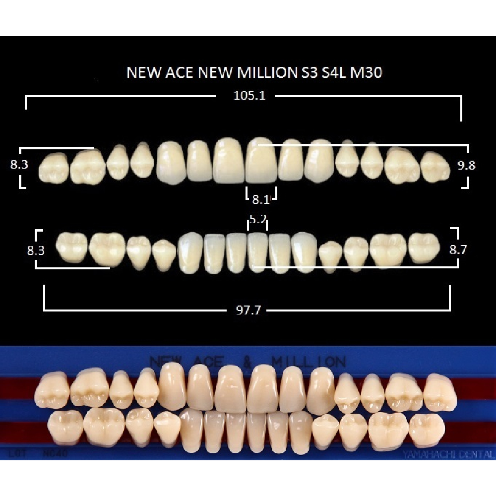 Зубы акриловые New Ace / New Million, фасон S3/S4L M30, полный гарнитур (28 шт), Yamahachi