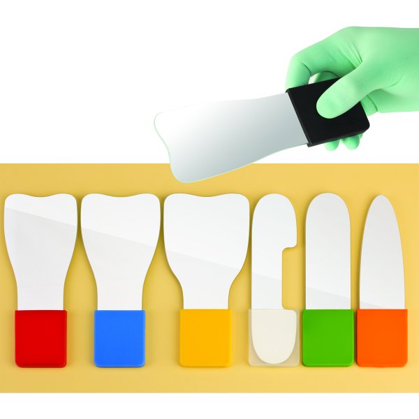 Для фотоснимков в щечной и язычной зонах разработаны специальные оптимальные формы. Для использования в ортодонтии имеются зеркала для окклюзионной и щечной зоны, в том числе размеры, предназначенные для детей.