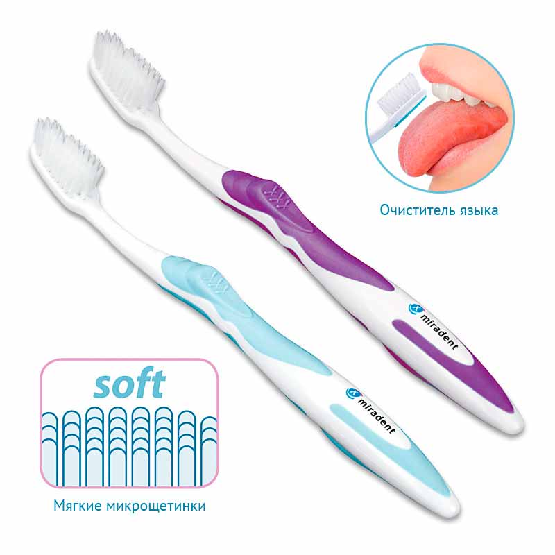 Carebrush supersoft от производителя Miradent – зубная щётка с шелковистыми микрощетинками.
